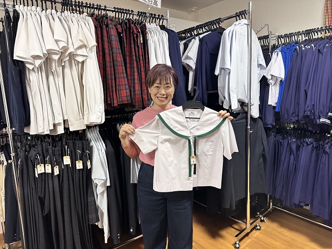 店内は県内中部を中心に中学・高校の学生服を学校別、サイズ別、夏服冬服でご用意。お客様の様々な要望に応えることが出来るよう、約3,000着もの制服が並んでいます。